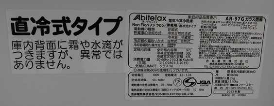 2023年製 吉井電気冷凍冷蔵庫 Abitelax 97L (稚内市内の方に限定・配達は2階まで・配達料は別途 5,500円いただきます。3階以上は応相談)